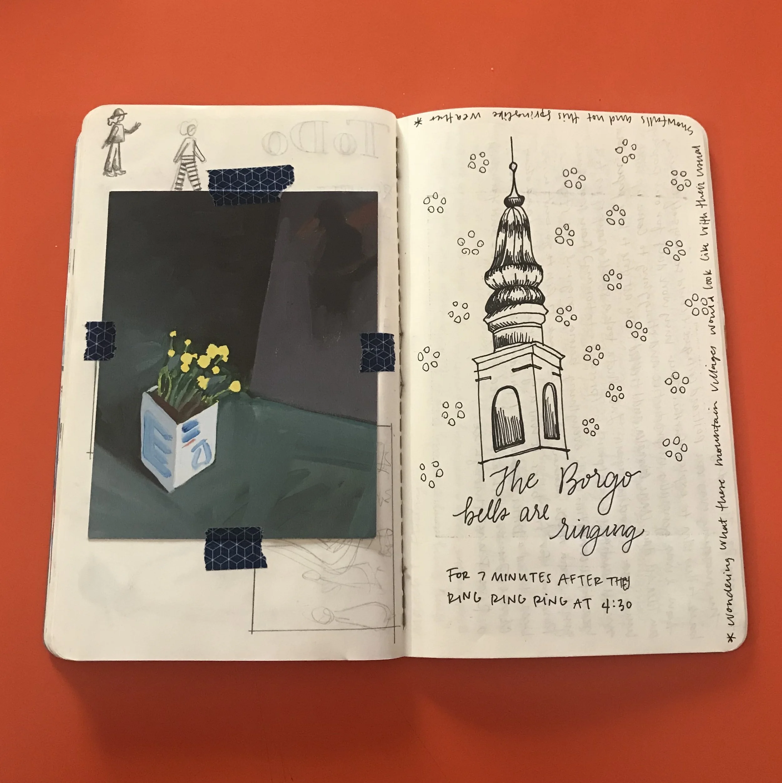 A collection of sketchbook pages from my time in Italy, 2019